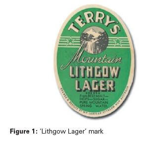 Sharp-eyed readers will note that the top part of the label as used is almost identical to IPDC’s registration. There are some minor alterations to the font style of the words TERRY’S and MOUNTAIN and the shape of the stars. However, the lower part of the label included the words ‘SPRING’; ‘SPARKLING ALE’, ‘PALE ALE’ or ‘LITHGOW LAGER’ and the text: